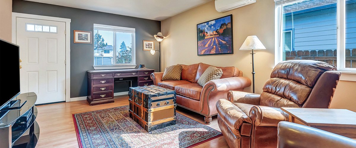 Take a look at these super cute properties in Downtown Sisters. Located only 350 feet away from Creekside Park these two rentals are easy walking to many cafes, the library, movie theater, and brewery. For those who enjoy mountain biking or jogging, you can easily access the Peterson Ridge trail system less than a half mile away, and should you lose a bolt off of your bike or car you can easily walk over to Ace Hardware, 650 feet away, for a replacement.